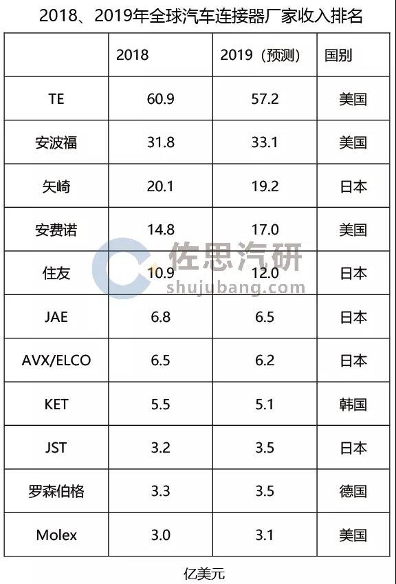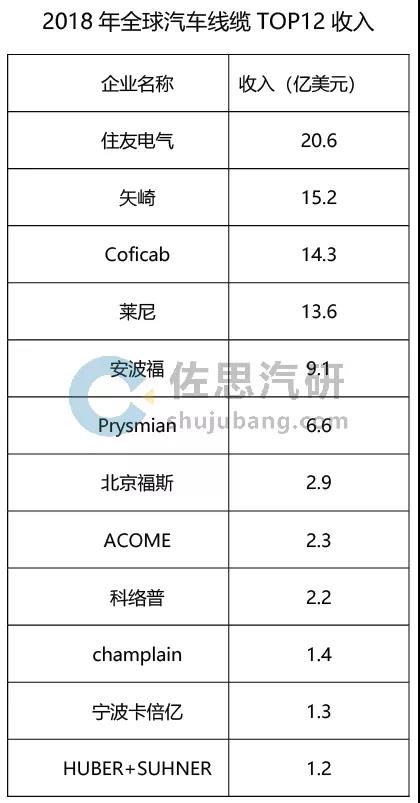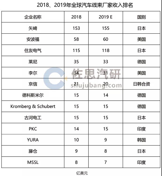2.1、2018、2019年全球汽車線束廠家收入排名